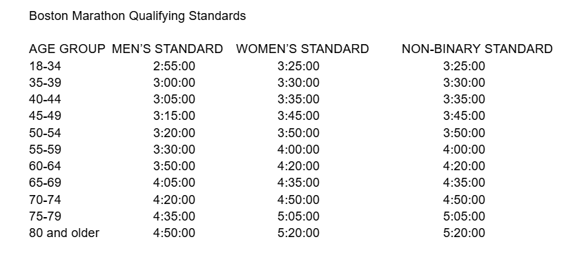 Boston Marathon Qualifying Standards